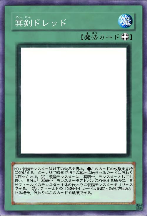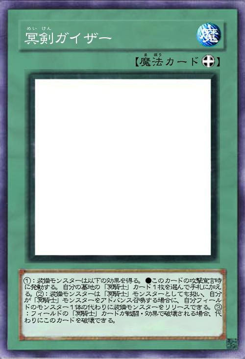 ①:装備モンスターは以下の効果を得る。●このカードの攻撃宣言時に発動する。相手は自身のフィールドのカードを1枚選んで墓地に送らなければならない。②:装備モンスターは「冥騎士」モンスターとしても扱い、自分が「冥騎士」モンスターをアドバンス召喚する場合に、自分フィールドのモンスター1体の代わりに装備モンスターをリリースできる。 ③:フィールドの「冥騎士」カードが戦闘・効果で破壊される場合、代わりにこのカードを破壊できる。 |