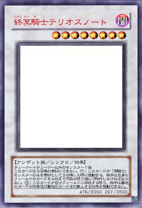 【アンデット族/シンクロ/効果】 チューナー+チューナー以外のモンスター1体 このカードはS召喚の素材にできない。①:このカードが「冥騎士」モンスターのみを素材としてS召喚した時に発動する。相手は自身のフィールドのカードを2枚まで可能な限り選んで除外しなければならない。②:このカードが自分フィールドに存在する限り、相手が墓地のカードの効果及び墓地のカードを対象とする効果を発動する度に相手に1000ダメージを与える。 |