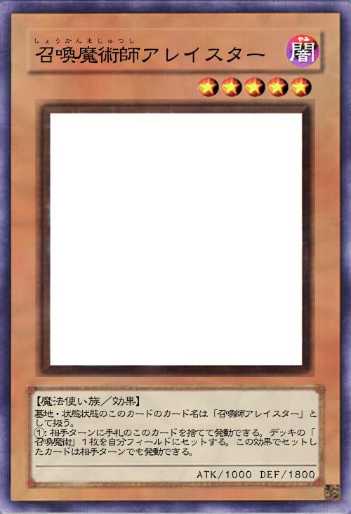 【魔法使い族/効果】 墓地・状態状態のこのカードのカード名は「召喚師アレイスター」として扱う。 ①:相手ターンに手札のこのカードを捨てて発動できる。デッキの「召喚魔術」1枚を自分フィールドにセットする。この効果でセットしたカードは相手ターンでも発動できる。 |