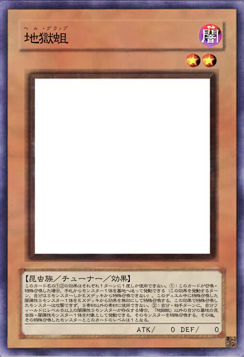 【昆虫族/チューナー/効果】 このカード名の①②の効果はそれぞれ1ターンに1度しか使用できない。①:このカードが召喚・特殊召喚した場合、手札からモンスター1体を墓地へ送って発動できる(この効果を発動するターン、自分はSモンスターしかEXデッキから特殊召喚できない)。このデュエル中に特殊召喚した闇属性Sモンスター1体をEXデッキから効果を無効にして特殊召喚する。この効果で特殊召喚したモンスターは攻撃できず、S素材以外の素材に使用できない。②:自分・相手ターンに、自分フィールドにレベル8以上の闇属性Sモンスターが存在する場合、「地獄蛆」以外の自分の墓地の昆虫族・闇属性モンスター1体を対象として発動できる。そのモンスターを特殊召喚する。その後、その特殊召喚したモンスターとこのカードのレベルは1となる。 |