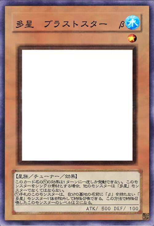 【星族/チューナー/効果】 このカード名の①の効果は1ターンに一度しか発動できない。このモンスターをシンクロ素材とする場合、他のモンスターは「多星」モンスターでなくてはならない。 ①手札のこのモンスターは、自分の墓地の名前に「β」を持たない「多星」モンスター1体を除外して特殊召喚できる。この方法で特殊召喚したこのモンスターのレベルは2になる。 |