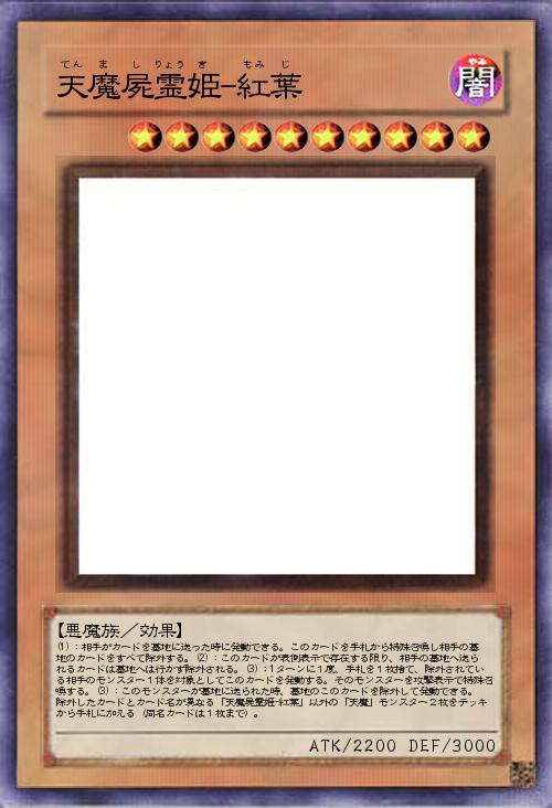 【悪魔族/効果】 (1):相手がカードを墓地に送った時に発動できる。このカードを手札から特殊召喚し相手の墓地のカードをすべて除外する。(2):このカードが表側表示で存在する限り、相手の墓地へ送られるカードは墓地へは行かず除外される。(3):1ターンに1度、手札を1枚捨て、除外されている相手のモンスター1体を対象としてこのカードを発動する。そのモンスターを攻撃表示で特殊召喚する。(3):このモンスターが墓地に送られた時、墓地のこのカードを除外して発動できる。除外したカードとカード名が異なる「天魔屍霊姫-紅葉」以外の「天魔」モンスター2枚をデッキから手札に加える(同名カードは1枚まで)。 |