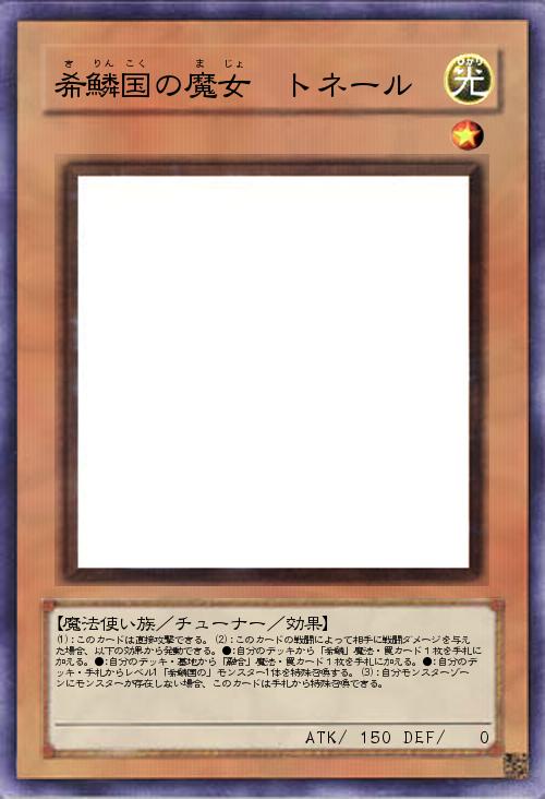 【魔法使い族/チューナー/効果】 (1):このカードは直接攻撃できる。(2):このカードの戦闘によって相手に戦闘ダメージを与えた場合、以下の効果から発動できる。●:自分のデッキから「希鱗」魔法・罠カード1枚を手札に加える。●:自分のデッキ・墓地から「融合」魔法・罠カード1枚を手札に加える。●:自分のデッキ・手札からレベル1「希鱗国の」モンスター1体を特殊召喚する。(3):自分モンスターゾーンにモンスターが存在しない場合、このカードは手札から特殊召喚できる。 |