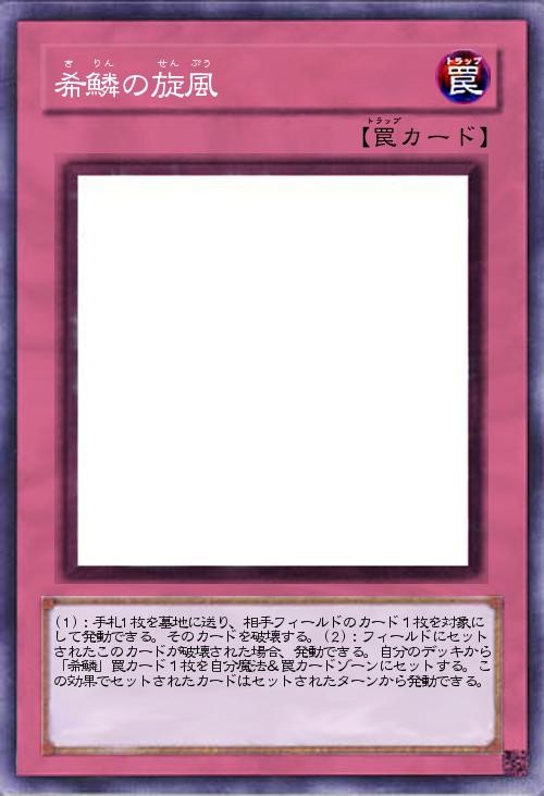 (1):自分モンスターゾーンに「希鱗」モンスターが存在し、相手モンスターゾーンにモンスターが召喚・特殊召喚・反転召喚に成功した場合、発動できる。そのモンスターの攻撃力・守備力を自分モンスターゾーンに存在する「希鱗」モンスターの数×800ポイントダウンし、そのモンスターがモンスターゾーンに存在する限り、そのモンスターのコントローラーは自分のスタンバイフェイズに500ポイントのダメージを受ける。 |