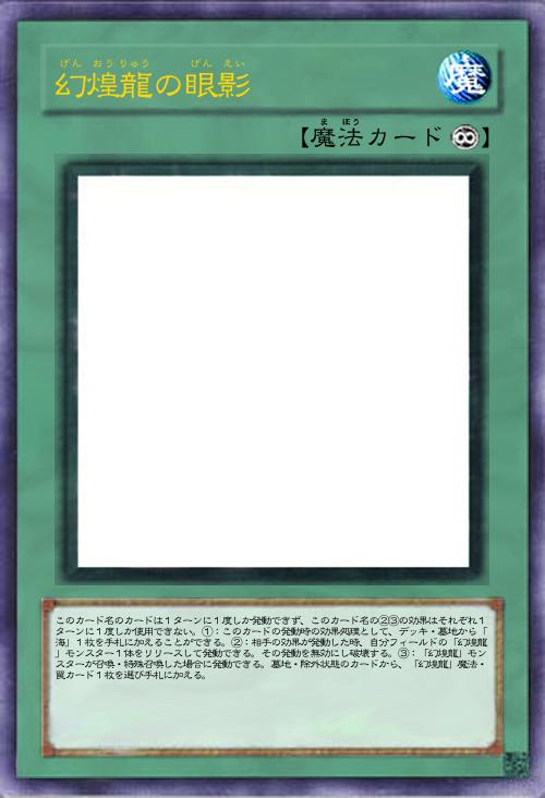 このカード名のカードは1ターンに1度しか発動できず、このカード名の②③の効果はそれぞれ1ターンに1度しか使用できない。①:このカードの発動時の効果処理として、デッキ・墓地から「海」1枚を手札に加えることができる。②:相手の効果が発動した時、自分フィールドの「幻煌龍」モンスター1体をリリースして発動できる。その発動を無効にし破壊する。③:「幻煌龍」モンスターが召喚・特殊召喚した場合に発動できる。墓地・除外状態のカードから、「幻煌龍」魔法・罠カード1枚を選び手札に加える。 |