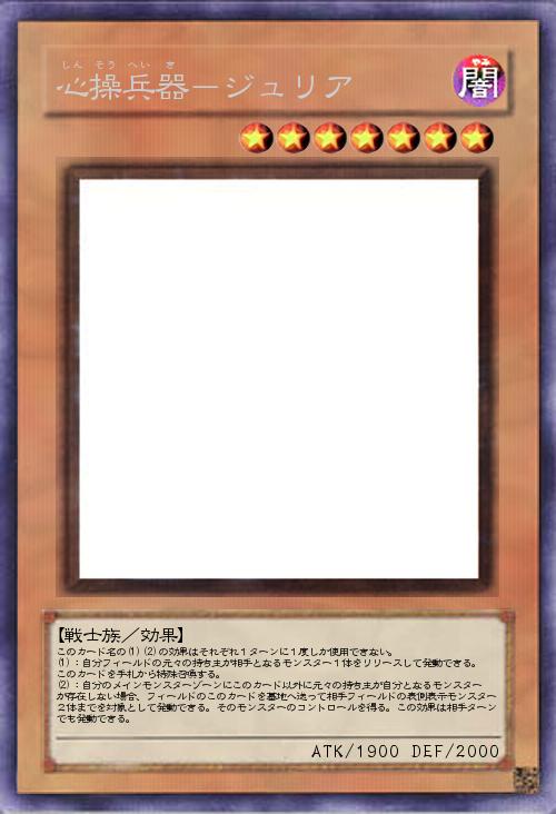 【サイキック族/エクシーズ/効果】 元々の持ち主が相手となるモンスター×2体以上 (1):1ターンに1度、相手がモンスターの効果を発動した時、このカードのX素材を1つ取り除いて発動できる。その発動を無効にする。この効果でフィールドのモンスターの効果の発動を無効にした場合、さらにそのコントロールを得る。 (2):1ターンに1度、デッキから「心操兵器」罠カード1枚を墓地へ送って発動できる。デッキから「心操兵器」罠カード1枚を自分フィールドにセットする。この効果でセットしたカードはセットしたターンでも発動できる。この効果は相手ターンでも発動できる。 |