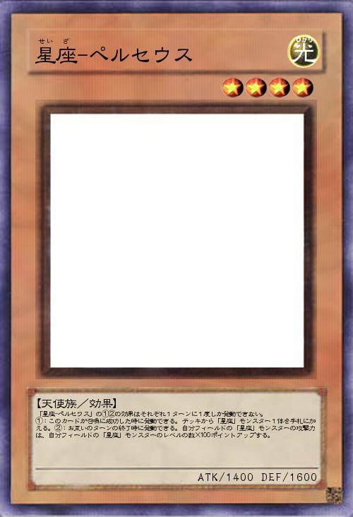 【天使族/効果】 「星座-ぺルセウス」の①②の効果はそれぞれ1ターンに1度しか発動できない。 ①:このカードが召喚に成功した時に発動できる。デッキから「星座」モンスター1体を手札に加える。②:お互いのターンの終了時に発動できる。自分フィールドの「星座」モンスターの攻撃力は、自分フィールドの「星座」モンスターのレベルの数×100ポイントアップする。 |