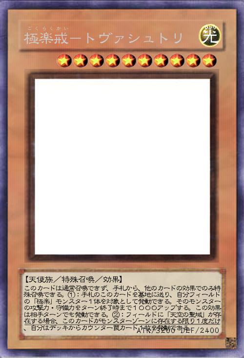 【天使族/特殊召喚/効果】 このカードは通常召喚できず、手札から、他のカードの効果でのみ特殊召喚できる。①:手札のこのカードを墓地に送り、自分フィールドの「極楽」モンスター1体を対象として発動できる。そのモンスターの攻撃力・守備力をターン終了時まで1000アップする。この効果は相手ターンでも発動できる。②:フィールドに「天空の聖域」が存在する場合、このカードがモンスターゾーンに存在する限り1度だけ、自分はデッキからカウンター罠カード1枚を発動できる。 |