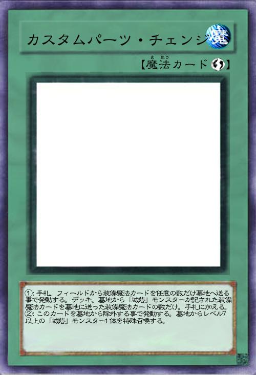 ①:手札、フィールドから装備魔法カードを任意の数だけ墓地へ送る事で発動する。デッキ、墓地から「城砦」モンスターが記された装備魔法カードを墓地に送った装備魔法カードの数だけ。手札に加える。②:このカードを墓地から除外する事で発動する。墓地からレベル7以上の「城砦」モンスター1体を特殊召喚する。 |