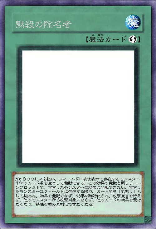 このカード名の効果は1ターンに1度しか発動できない。①:カード名を一つ宣言して発動できる。このデュエル中、お互いに宣言したカードおよびそのカード名が記された魔法・罠・モンスター効果の発動ができない。 |