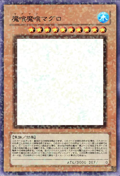 【魚族/効果】 このカードはデッキ・墓地からの特殊召喚はできず、このカードを特殊召喚する場合、このカードの効果でしか手札から特殊召喚できない。このカード名の①の効果は1ターンに1度しか使用できない。①:このカードが手札に存在する場合、自分及び相手の魔法・罠ゾーンに存在するカードを任意の枚数対象として発動できる。対象としたカードを全て墓地に送り、このカードを手札から攻撃表示で特殊召喚する。その後、自分フィールド上のモンスターの攻撃力はターン終了時まで、この効果で墓地に送ったカード1枚につき300ポイントダウンする。この効果で特殊召喚したこのカードは、次の相手ターン終了時まで融合・S・X・リンク素材にできない。 |