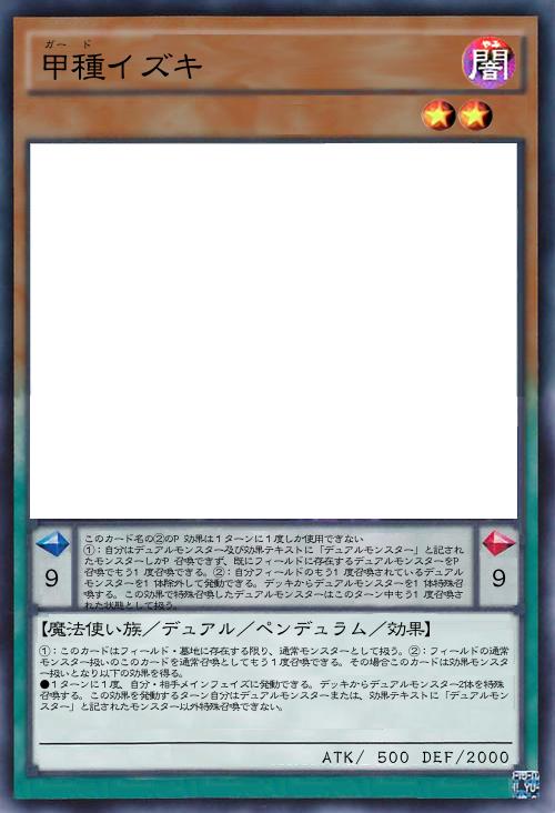 ●1ターンに1度、自分・相手メインフェイズに発動できる。デッキからデュアルモンスター2体を特殊召喚する。この効果を発動するターン自分はデュアルモンスターまたは、効果テキストに「デュアルモンスター」と記されたモンスター以外特殊召喚できない。