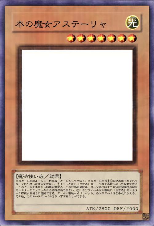 【魔法使い族/効果】 このカード名はルール上「白き森」モンスター、「ディアベルスター」モンスターとしても扱う。このカード名の①②の効果はそれぞれ1ターンに1度しか使用できない。①:自分フィールドにモンスターが存在しない場合に発動できる。手札のこのカードを特殊召喚する。②:自分フィールド・墓地に魔法使い族・幻想魔族以外のモンスターが存在しない場合、このカードをリリースして発動できる。デッキから以下のモンスターのうち、いずれかを特殊召喚する。●「白き森のアステーリャ」と「白き森のシルヴィ」●「白き森のリゼット」と「白き森のルシア」 |