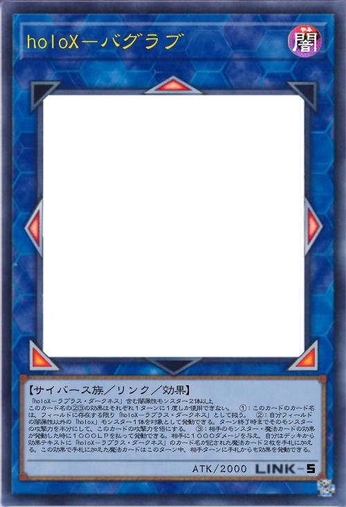 このカード名の①②の効果はそれぞれ1ターンに1度しか使用できない。 ①:フィールドの「holoX-風真 いろは」1体を対象として発動できる。そのモンスターのレベル以下の属性が異なるサイバース族モンスター1体を手札に加える。 ②:自分がLPを払った場合に墓地のこのカードを除外して発動できる。その数値分だけ自分のLPを回復する。「holoX-ラプラス・ダークネス」の効果でLPを払った場合、エンドフェイズにこのターン墓地へ送られた魔法カード1枚を手札に加える。 |