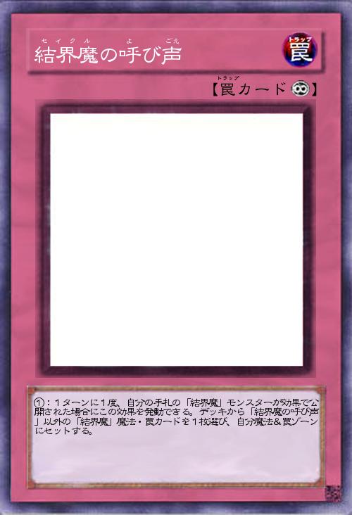 ①:1ターンに1度、自分の手札の「結界魔」モンスターが効果で公開された場合にこの効果を発動できる。デッキから「結界魔の呼び声」以外の「結界魔」魔法・罠カードを1枚選び、自分魔法&罠ゾーンにセットする。 |