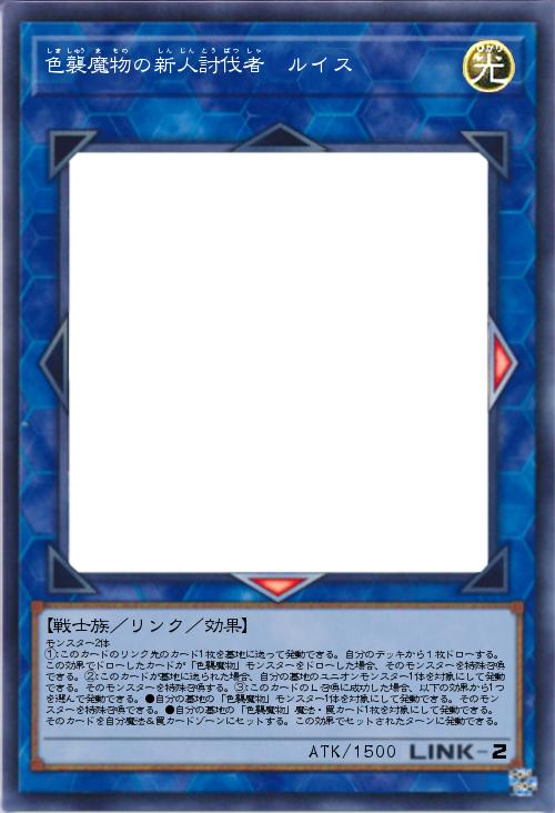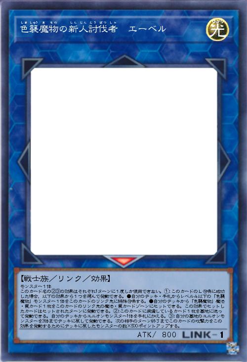 【魚族/リンク/ユニオン/効果】 モンスター1体 ①:1ターンに1度、以下の効果から1つを選択して発動できる。●自分フィールドの「色襲魔物の新人討伐者」モンスター1体を対象とし、このカードを装備カード扱いとしてそのモンスターに装備する。装備モンスターが戦闘・効果で破壊される場合、代わりにこのカードを破壊する。●装備されているこのカードを特殊召喚する。②:装備モンスターは相手に直接攻撃できる。この効果で直接攻撃する場合、相手に与えるダメージは1000になる。③:このカードの戦闘によって相手にダメージを与えた場合、発動できる。自分のデッキから1枚ドローする。④:このカードのリンク先にカードが存在する限り、このカードは相手に直接攻撃できる。 |