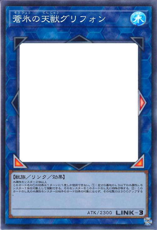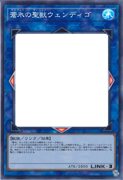 【獣族/リンク/効果】 「蒼氷」モンスターを含む水属性モンスター2体以上 このカード名の①②の効果はそれぞれ1ターンに1度しか使用できない。①:自分フィールドゾーンにカードが存在する場合、このカードは相手の効果では破壊されない。②:相手がカード効果を発動した時、相手フィールドのモンスター1体を対象として発動できる。そのモンスターの効果を無効にし、攻撃力・守備力を0にする。 |