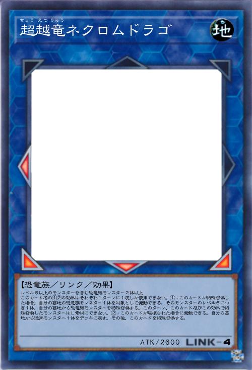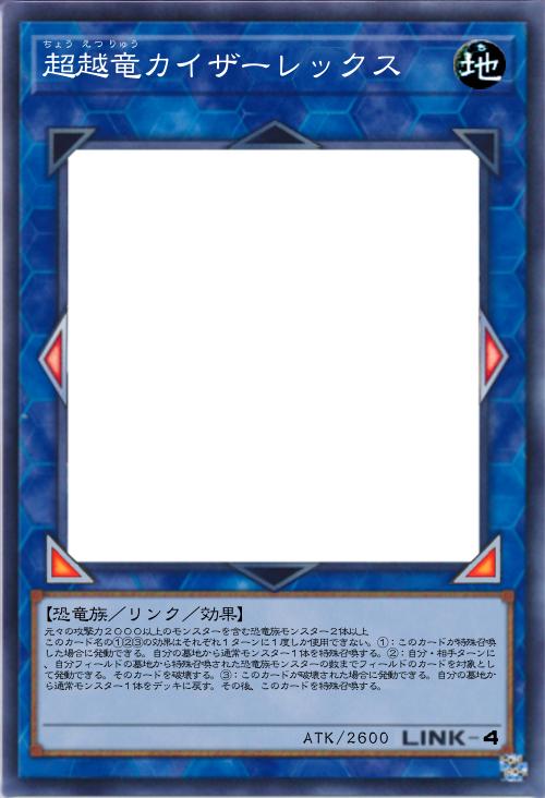【恐竜族/リンク/効果】 恐竜族モンスター2体 このカード名の①②③の効果はそれぞれ1ターンに1度しか使用できない。①:このカードが特殊召喚した場合に発動できる。デッキから恐竜族・レベル12モンスター1体を手札に加える。②:このカードをリリースして発動できる。自分フィールドのモンスター1体を破壊し、手札・デッキから恐竜族の通常モンスター1体を特殊召喚する。③:このカードが破壊された場合に発動できる。自分の墓地から通常モンスター1体をデッキに戻す。その後、このカードを特殊召喚する。 |