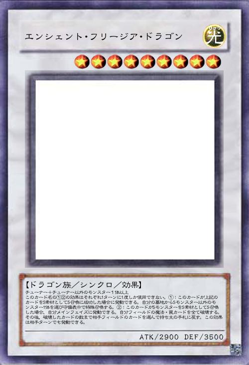 【ドラゴン族/シンクロ/効果】 チューナー+チューナー以外のモンスター1体以上 このカード名の①②の効果はそれぞれ1ターンに1度しか使用できない。①:このカードが上記のカードをS素材としてS召喚に成功した場合に発動できる。自分の墓地からSモンスター以外のモンスター1体を選び守備表示で特殊召喚する。②:このカードがSモンスターをS素材としてS召喚した場合、自分メインフェイズに発動できる。自分フィールドの魔法・罠カードを全て破壊する。その後、破壊したカードの数まで相手フィールドのカードを選んで持ち主の手札に戻す。この効果は相手ターンでも発動できる。 |
