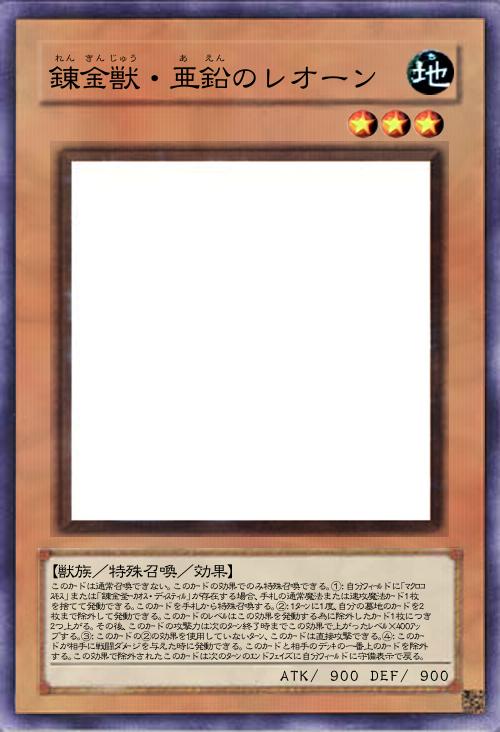 【獣族/特殊召喚/効果】 このカードは通常召喚できない。このカードの効果でのみ特殊召喚できる。①:自分フィールドに「マクロコスモス」または「錬金釜ーカオス・ディスティル」が存在する場合、手札の通常魔法または速攻魔法カード1枚を捨てて発動できる。このカードを手札から特殊召喚する。②:1ターンに1度、自分の墓地のカードを2枚まで除外して発動できる。このカードのレベルはこの効果を発動する為に除外したカード1枚につき2つ上がる。その後、このカードの攻撃力は次のターン終了時までこの効果で上がったレベル×400アップする。③:このカードの②の効果を使用していないターン、このカードは直接攻撃できる。④:このカードが相手に戦闘ダメージを与えた時に発動できる。このカードと相手のデッキの一番上のカードを除外する。この効果で除外されたこのカードは次のターンのエンドフェイズに自分フィールドに守備表示で戻る。 |