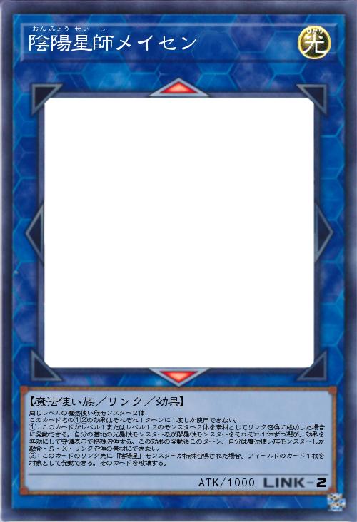 【魔法使い族/リンク/効果】 同じレベルの魔法使い族モンスター2体 このカード名の①②の効果はそれぞれ1ターンに1度しか使用できない。 ①:このカードがレベル1またはレベル12のモンスター2体を素材としてリンク召喚に成功した場合に発動できる。自分の墓地の光属性モンスター及び闇属性モンスターをそれぞれ1体ずつ選び、効果を無効にして守備表示で特殊召喚する。この効果の発動後このターン、自分は魔法使い族モンスターしか融合・S・X・リンク召喚の素材にできない。 ②:このカードのリンク先に「陰陽星」モンスターが特殊召喚された場合、フィールドのカード1枚を対象として発動できる。そのカードを破壊する。 |