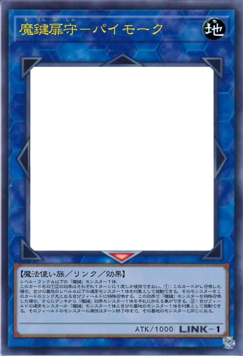 【魔法使い族/リンク/効果】 レベル・ランク4以下の「魔鍵」モンスター1体 このカード名の①②の効果はそれぞれ1ターンに1度しか使用できない。①:このカードがL召喚した場合、自分の墓地のレベル4以下の通常モンスター1体を対象として発動できる。そのモンスターをこのカードのリンク先となる自分フィールドに特殊召喚する。この効果で「魔鍵」モンスターを特殊召喚した場合、さらにデッキから「魔鍵」効果モンスター1体を手札に加える事ができる。②:自分フィールドの通常モンスターか「魔鍵」モンスター1体と自分の墓地のモンスター1体を対象として発動できる。そのフィールドのモンスターの属性はターン終了時まで、その墓地のモンスターと同じになる。 |