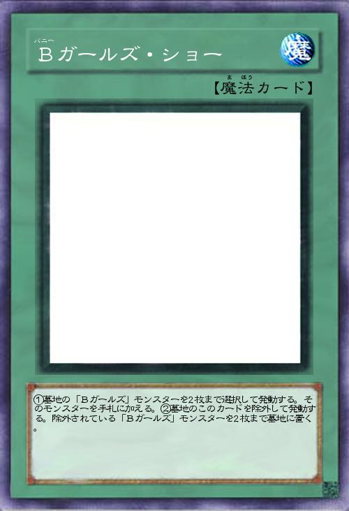 ①墓地の「Bガールズ」モンスターを2枚まで選択して発動する。そのモンスターを手札に加える。②墓地のこのカードを除外して発動する。除外されている「Bガールズ」モンスターを2枚まで墓地に置く。 |