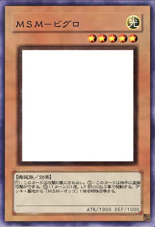【機械族/効果】 ①:このカードは攻撃対象にされない。②:このカードは相手に直接攻撃ができる。③:1ターンに1度、LPを500払う事で発動する。デッキ・墓地から「MSM-オッゴ」1体を特殊召喚する。 |