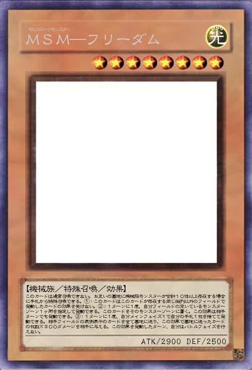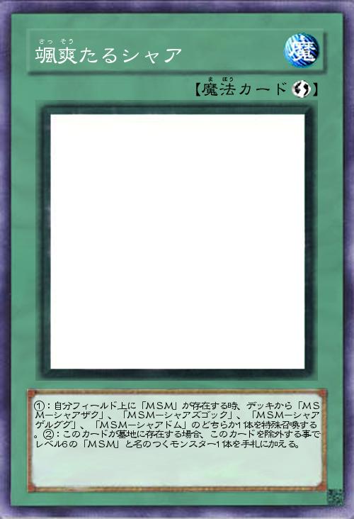自分フィールド上に「MSM」と名のつく同名モンスターを3体選択して発動する。そのモンスターはこのターンのエンドフェイズまで、3回攻撃できる。 |