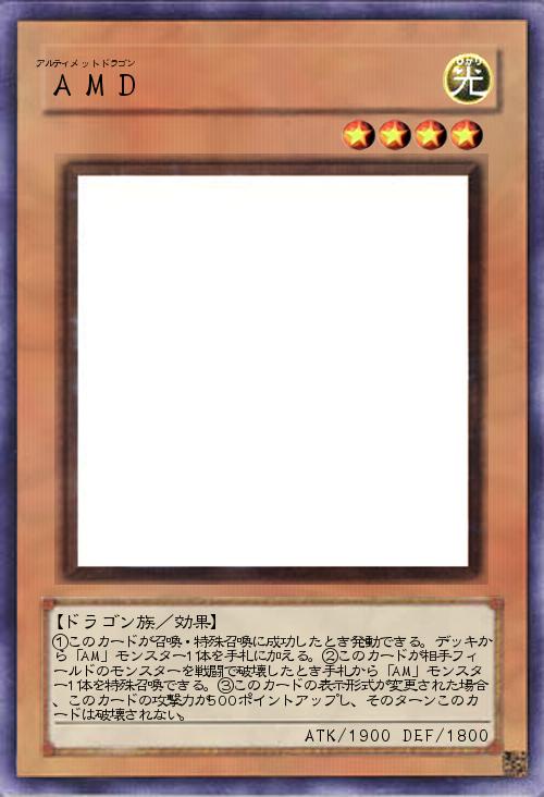 【ドラゴン族/効果】 ①このカードが召喚・特殊召喚に成功したとき発動できる。デッキから「AM」モンスター1体を手札に加える。②このカードが相手フィールドのモンスターを戦闘で破壊したとき手札から「AM」モンスター1体を特殊召喚できる。③このカードの表示形式が変更された場合、このカードの攻撃力が500ポイントアップし、そのターンこのカードは破壊されない。 |