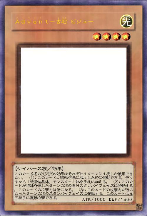 このカード名の②③の効果はそれぞれ1ターンに1度しか使用できない。 ①:このカードがフィールドに表側表示で存在する限り、自分フィールドの「Advent」モンスターは悪魔族としても扱う。 ②:自分フィールドの「Advent」モンスター1体をデッキに戻して発動できる。相手フィールドのカード1枚を選んでデッキに戻す。 ③:このカードが相手によって墓地へ送られた場合発動できる。デッキから「Advent」モンスター1体を特殊召喚する。 |