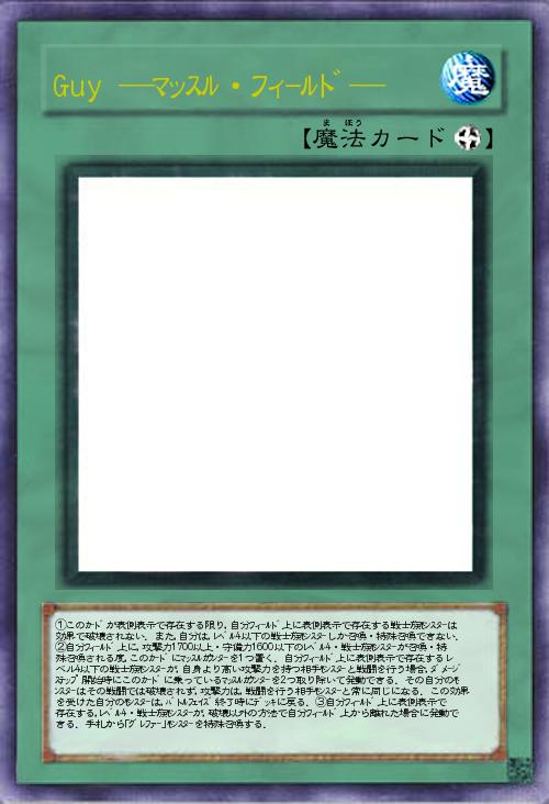 ①このカ-ドが表側表示で存在する限り,自分フィ-ルド上に表側表示で存在する戦士族モンスタ-は効果で破壊されない.また,自分は,レベル4以下の戦士族モンスタ-しか召喚・特殊召喚できない.②自分フィ-ルド上に,攻撃力1700以上・守備力1600以下のレベル4・戦士族モンスタ-が召喚・特殊召喚される度,このカ-ドにマッスルカウンタ-を1つ置く.自分フィ-ルド上に表側表示で存在するレベル4以下の戦士族モンスタ-が,自身より高い攻撃力を持つ相手モンスタ-と戦闘を行う場合,ダメ-ジステップ開始時にこのカ-ドに乗っているマッスルカウンタ-を2つ取り除いて発動できる.その自分のモンスタ-はその戦闘では破壊されず,攻撃力は,戦闘を行う相手モンスタ-と常に同じになる.この効果を受けた自分のモンスタ-は,バトルフェイズ終了時にデッキに戻る.③自分フィ-ルド上に表側表示で存在する,レ |