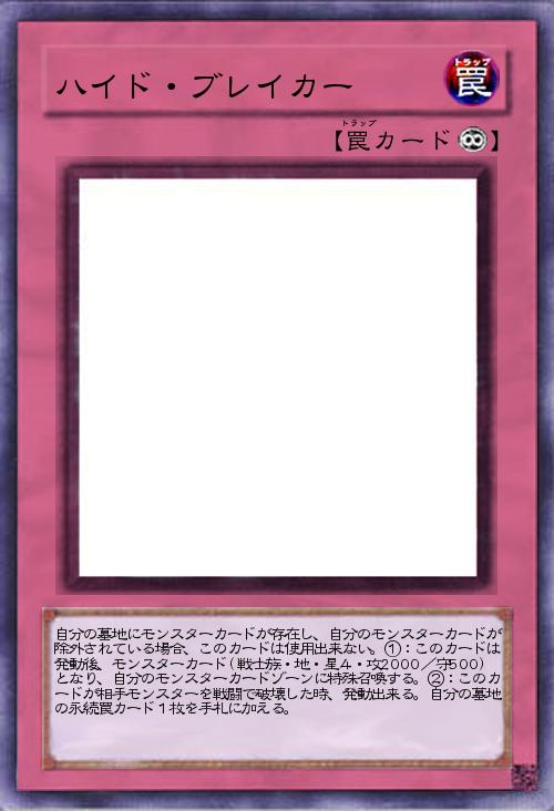 自分の墓地にモンスターカードが存在し、自分のモンスターカードが除外されている場合、このカードは使用出来ない。①:このカードは発動後、モンスターカード(戦士族・地・星4・攻2000/守500)となり、自分のモンスターカードゾーンに特殊召喚する。②:このカードが相手モンスターを戦闘で破壊した時、発動出来る。自分の墓地の永続罠カード1枚を手札に加える。 |