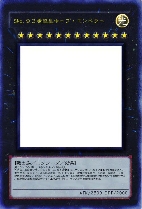 【ドラゴン族/エクシーズ/効果】 レベル11モンスター×3 このカードは自分フィールドの「No.99希望皇龍ホープドラグーン」の上に重ねてX召喚することもできる。このカードはカードの効果の対象にならない。1ターンに一度、このカードのX素材を一つ取り除いて発動できる。自分の墓地の「No.」モンスター1体を選択し、自分フィールドに特殊召喚する。 |