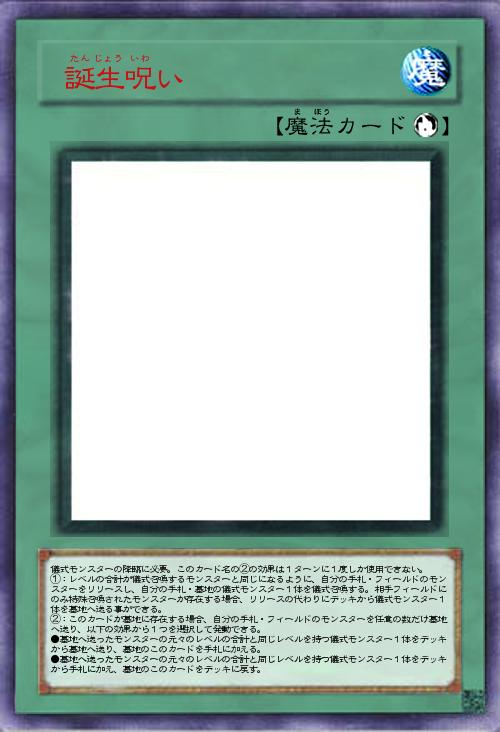 | 儀式モンスターの降臨に必要。このカード名の②の効果は1ターンに1度しか使用できない。 ①:レベルの合計が儀式召喚するモンスターと同じになるように、自分の手札・フィールドのモンスターをリリースし、自分の手札・墓地の儀式モンスター1体を儀式召喚する。相手フィールドにのみ特殊召喚されたモンスターが存在する場合、リリースの代わりにデッキから儀式モンスター1体を墓地へ送る事ができる。 ②:このカードが墓地に存在する場合、自分の手札・フィールドのモンスターを任意の数だけ墓地へ送り、以下の効果から1つを選択して発動できる。 ●墓地へ送ったモンスターの元々のレベルの合計と同じレベルを持つ儀式モンスター1体をデッキから墓地へ送り、墓地のこのカードを手札に加える。 ●墓地へ送ったモンスターの元々のレベルの合計と同じレベルを持つ儀式モンスター1体をデッキから手札に加え、墓地のこのカードをデッキに戻す。 | |||
