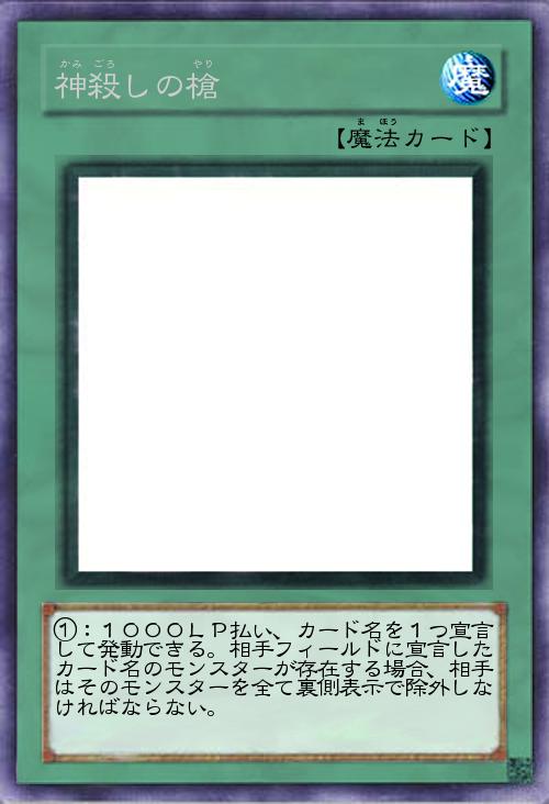 | ①:1000LP払い、カード名を1つ宣言して発動できる。相手フィールドに宣言したカード名のモンスターが存在する場合、相手はそのモンスターを全て裏側表示で除外しなければならない。 | |||