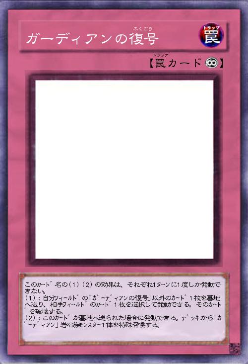 | このカード名の(1)(2)の効果は、それぞれ1ターンに1度しか発動できない。 (1):自分フィールドの「ガーディアンの復号」以外のカード1枚を墓地へ送り、相手フィールドのカード1枚を選択して発動できる。そのカードを破壊する。 (2):このカードが墓地へ送られた場合に発動できる。デッキから「ガーディアン」岩石族モンスター1体を特殊召喚する。 | |||