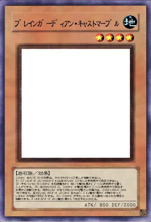| このカード名の(3)(4)の効果は、それぞれ1ターンに1度しか発動できない。 (1):「ブレインガーディアン・キャストマーブル」は自分フィールドに1枚しか表側表示で存在できない。(2):手札・フィールドのこのカードを永続魔法カード扱いで魔法&罠カードゾーンに表側表示で置くことができる。(3):自分メインフェイズに、このカードが魔法&罠カードゾーンに表側表示で存在する場合に発動できる。相手フィールドの全てのモンスターの攻撃力と守備力は、このターンのエンドフェイズ終了時まで、自分フィールドの「ガーディアン」カードまたは「パズル」魔法・罠カードが隣り合っているカードの枚数×300ダウンする。(4):このカードが手札・フィールドから墓地へ送られた場合に発動できる。デッキから「ガーディアン」魔法・罠カード1枚を手札に加える。 | |||