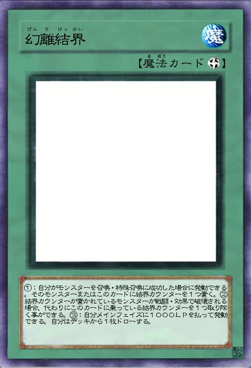 | ①:自分がモンスターを召喚・特殊召喚に成功した場合に発動できる。そのモンスターまたはこのカードに結界カウンターを1つ置く。②結界カウンターが置かれているモンスターが戦闘・効果で破壊される場合、代わりにこのカードに乗っている結界カウンターを1つ取り除く事ができる。③:自分メインフェイズに1000LPを払って発動できる。自分はデッキから1枚ドローする。 | |||