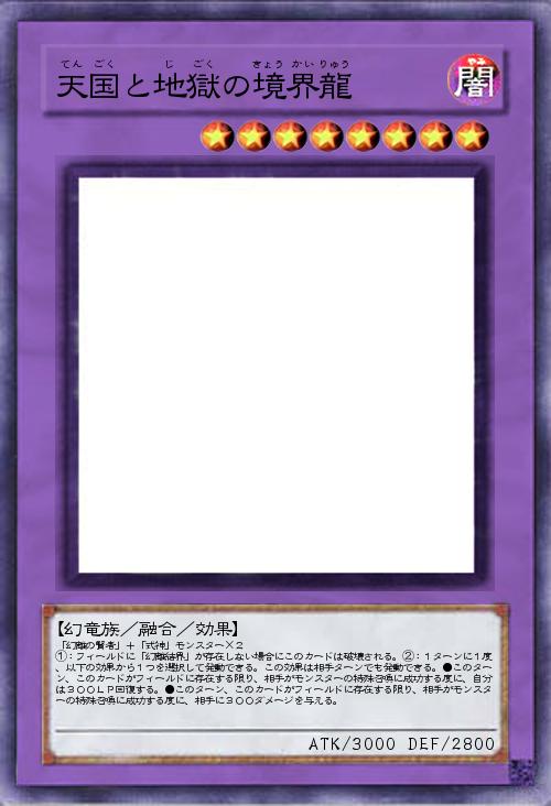 | 「幻離の賢者」+「式神」モンスター×2 ①:フィールドに「幻離結界」が存在しない場合にこのカードは破壊される。②:1ターンに1度、以下の効果から1つを選択して発動できる。この効果は相手ターンでも発動できる。●このターン、このカードがフィールドに存在する限り、相手がモンスターの特殊召喚に成功する度に、自分は300LP回復する。●このターン、このカードがフィールドに存在する限り、相手がモンスターの特殊召喚に成功する度に、相手に300ダメージを与える。 | |||