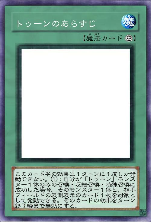 | このカード名の効果は1ターンに1度しか発動できない。①:自分が「トゥーン」モンスター1体のみの召喚・反転召喚・特殊召喚に成功した場合、そのモンスター1体と、相手フィールドの表側表示のカード1枚を対象として発動できる。そのカードの効果をターン終了時まで無効にする。 | |||