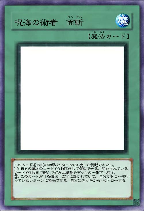 | このカード名の②の効果は1ターンに1度しか発動できない。 ①:自分の墓地のカードを3枚除外して発動できる。除外されているカードを3枚まで選んで好きな順番でデッキの一番下へ戻す。 ②:このカードが「呪海域」の下に置かれていて、自分がドローを行っていないターンに発動できる。自分はデッキから1枚ドローする。 | |||
