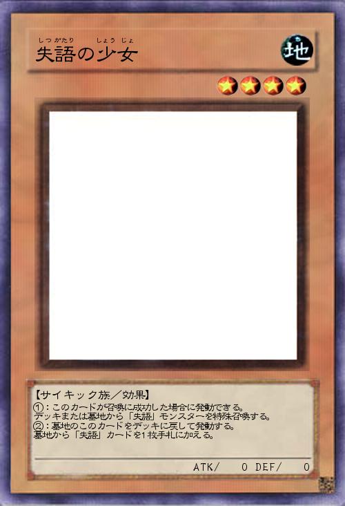| ①:このカードが召喚に成功した場合に発動できる。 デッキまたは墓地から「失語」モンスターを特殊召喚する。 ②:墓地のこのカードをデッキに戻して発動する。 墓地から「失語」カードを1枚手札に加える。 | |||