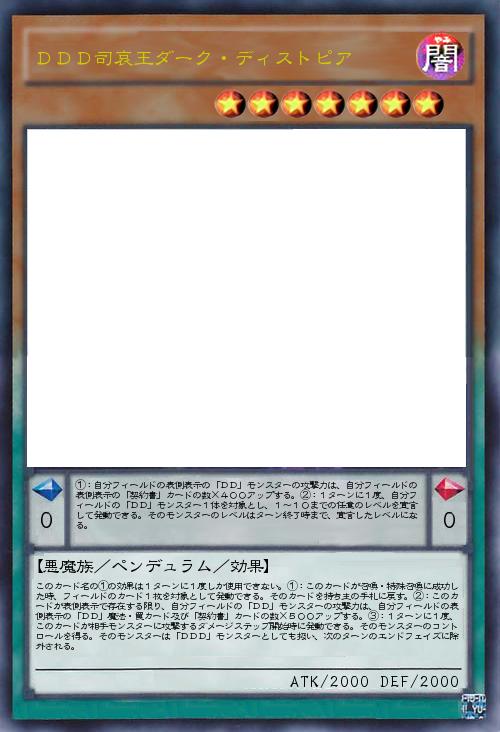 | ①:自分フィールドの表側表示の「DD」モンスターの攻撃力は、自分フィールドの表側表示の「契約書」カードの数×400アップする。②:1ターンに1度、自分フィールドの「DD」モンスター1体を対象とし、1~10までの任意のレベルを宣言して発動できる。そのモンスターのレベルはターン終了時まで、宣言したレベルになる。 | |||