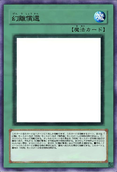 | このカード名のカードは1ターンに1枚しか発動できず、このカードを発動するターン、自分は「幻離」モンスター及び「式神」モンスター及び「境界龍」モンスターしか特殊召喚できない。①:3000LP払って発動できる。デッキからカード名の異なる「式神」モンスターを任意の数だけ墓地へ送り、手札から「幻離の賢者」を可能な限り特殊召喚する。自分のLPが相手より3000以上少ない場合、さらにこのターン、自分の「幻離の賢者」は以下の効果を適用する。●手札・フィールドのこのカードが融合召喚の素材になり、墓地へ送られた場合に発動できる。このカードと墓地の「式神」モンスター2体を特殊召喚する。 | |||