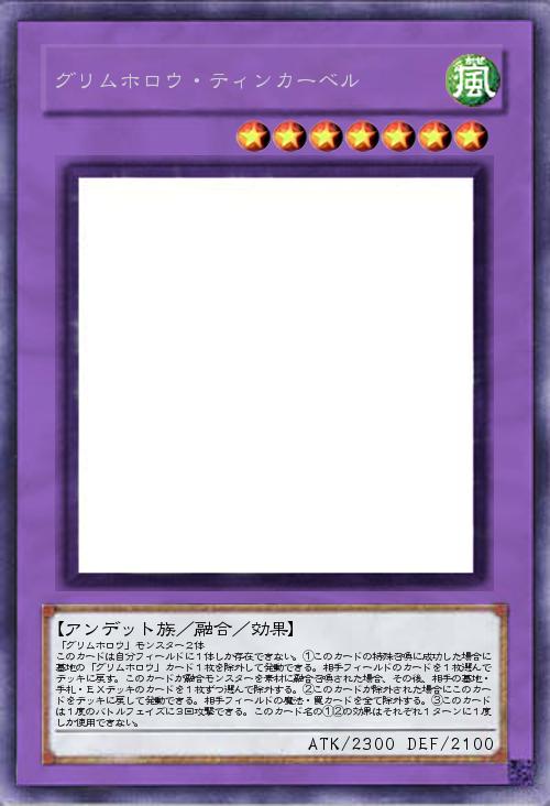| 「グリムホロウ」モンスター2体 このカードは自分フィールドに1体しか存在できない。①このカードの特殊召喚に成功した場合に墓地の「グリムホロウ」カード1枚を除外して発動できる。相手フィールドのカードを1枚選んでデッキに戻す。このカードが融合モンスターを素材に融合召喚された場合、その後、相手の墓地・手札・EXデッキのカードを1枚ずつ選んで除外する。②このカードが除外された場合にこのカードをデッキに戻して発動できる。相手フィールドの魔法・罠カードを全て除外する。③このカードは1度のバトルフェイズに3回攻撃できる。このカード名の①②の効果はそれぞれ1ターンに1度しか使用できない。 | |||