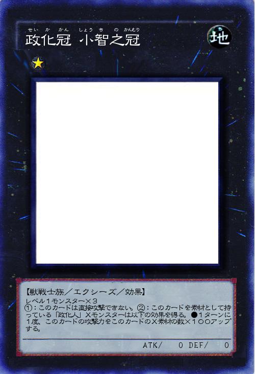 | レベル1モンスター×3 ①:このカードは直接攻撃できない。②:このカードを素材として持っている「政化人」Xモンスターは以下の効果を得る。●1ターンに1度、このカードの攻撃力をこのカードのX素材の数×100アップする。 | |||