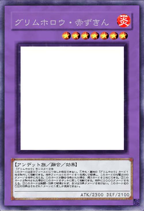 | 「グリムホロウ」モンスター3体 このカードは自分フィールドに1体しか存在できない。①手札・墓地の「グリムホロウ」カード1枚を除外して発動できる。相手フィールドのカードを1枚選んで破壊し、このカードの攻撃力分のダメージを相手に与える。このカードが融合召喚された場合、選ぶカードを2枚にできる。②このカードが除外された場合にこのカードをデッキに戻して発動できる。相手に2000ダメージを与える。③このカードは戦闘・効果で破壊されず、自分は効果ダメージを受けない。このカード名の①②の効果はそれぞれ1ターンに1度しか使用できない。 | |||