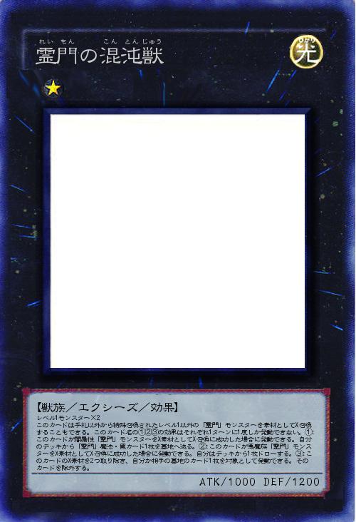 | レベル1モンスター×2 このカードは手札以外から特殊召喚されたレベル1以外の「霊門」モンスターを素材としてX召喚することもできる。このカード名の①②③の効果はそれぞれ1ターンに1度しか発動できない。①:このカードが闇属性「霊門」モンスターをX素材としてX召喚に成功した場合に発動できる。自分のデッキから「霊門」魔法・罠カード1枚を墓地へ送る。②:このカードが悪魔族「霊門」モンスターをX素材としてX召喚に成功した場合に発動できる。自分はデッキから1枚ドローする。③:このカードのX素材を2つ取り除き、自分か相手の墓地のカード1枚を対象として発動できる。そのカードを除外する。 | |||