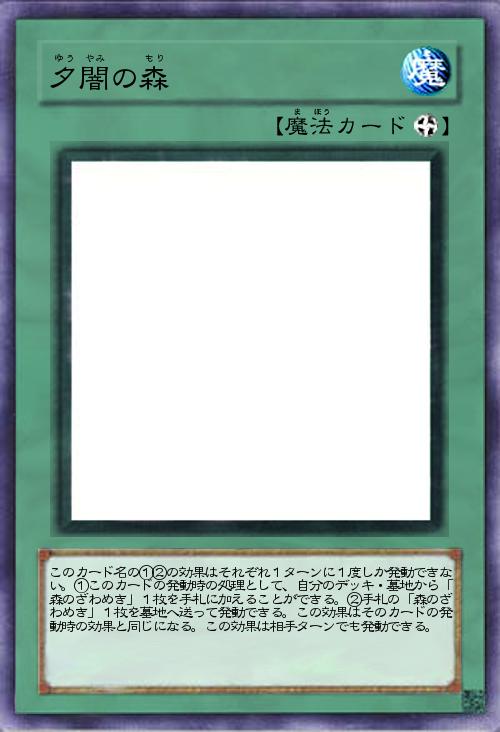 | このカード名の①②の効果はそれぞれ1ターンに1度しか発動できない。①このカードの発動時の処理として、自分のデッキ・墓地から「森のざわめき」1枚を手札に加えることができる。②手札の「森のざわめき」1枚を墓地へ送って発動できる。この効果はそのカードの発動時の効果と同じになる。この効果は相手ターンでも発動できる。 | |||